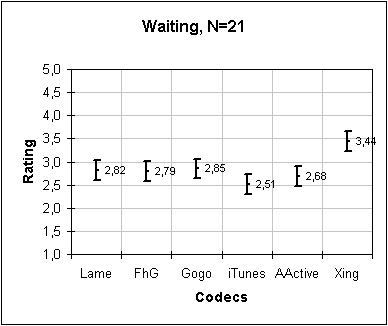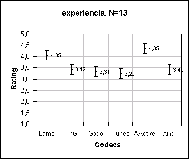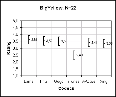 Important note: These plots represent group preferences (for the particular group of people who participated in the test). Individual preferences will vary somewhat. The best codec for a person is dependent on his own preferences and the type of music he prefers.