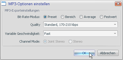 * Bei LAME wäre zu beachten, dass die Preset-Einstellungen (bisher) den Joint Stereo-Modus nicht automatisch aktivieren, weshalb man diesen vorher anwählen sollte.